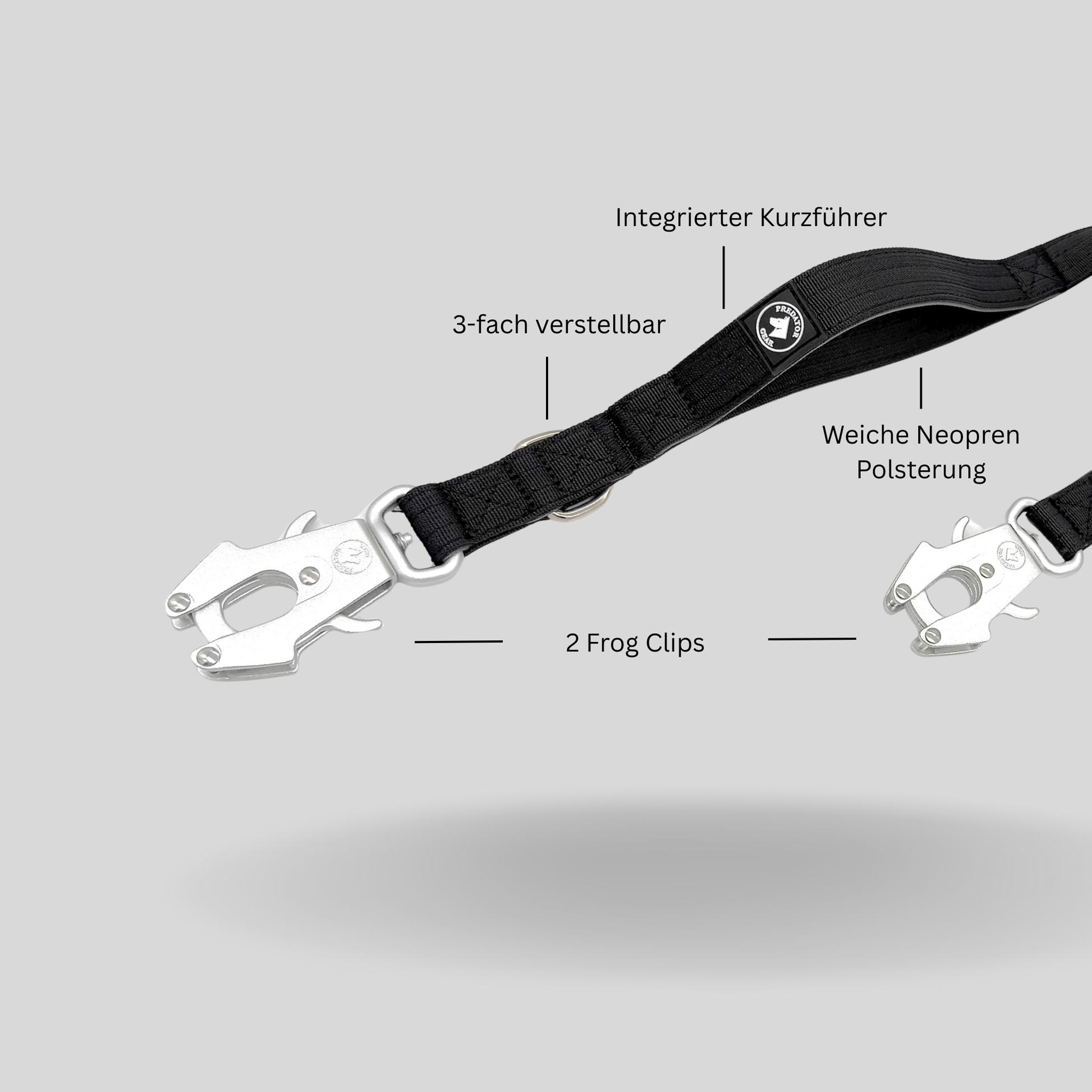 Gefertigt aus robustem Nylon mit Neopren-Komfortpolsterung und 2 charakteristischen Froschkarabinern, ist sie mehr als nur eine Leine - sie ist Teil deiner Ausrüstung. Der hochwertige Verschluss rastet bei Berührung mit dem Anschlagpunkt automatisch ein - für schnelle einhändige Sicherung & starken Halt auch unter Zug oder in kritischen Momenten.