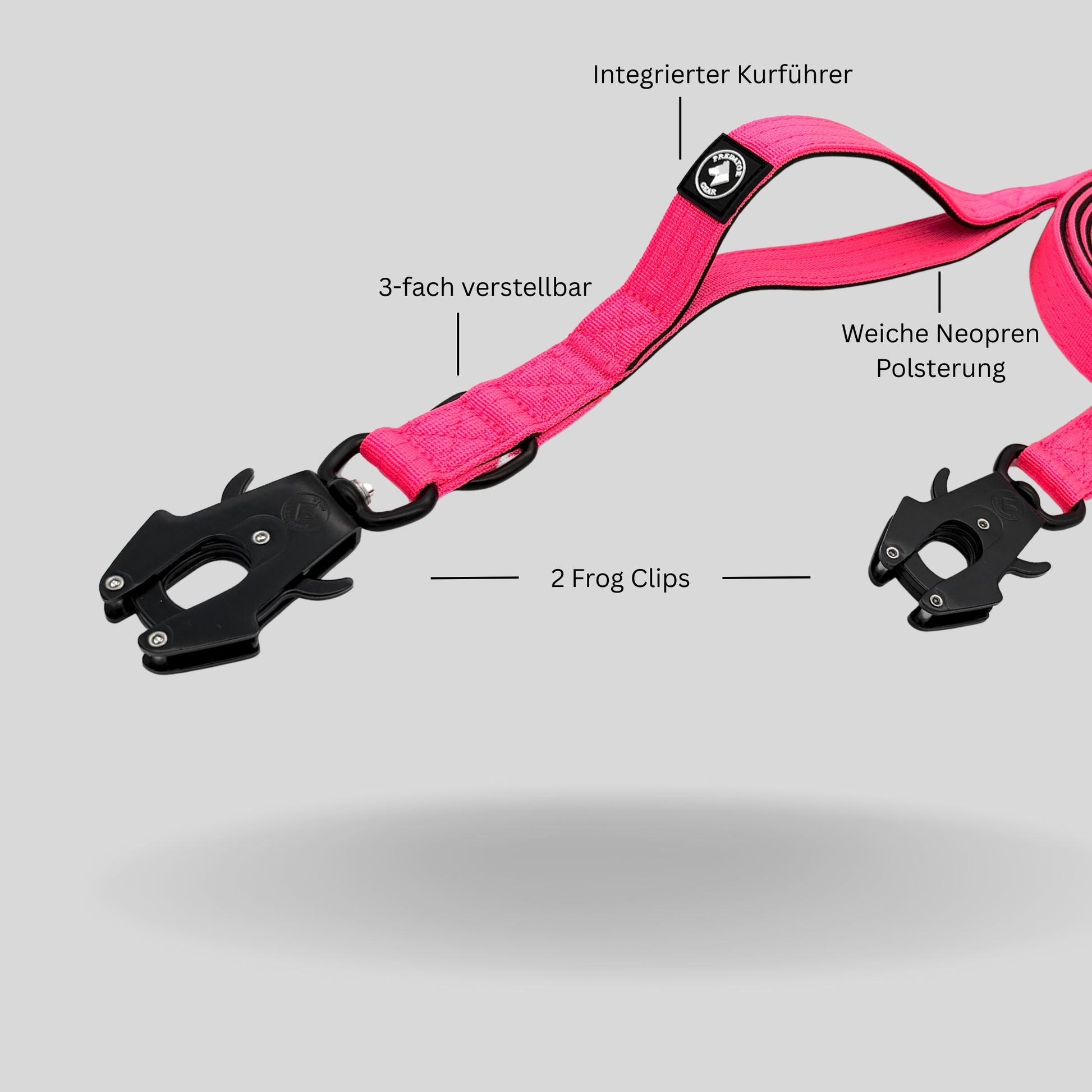 Gefertigt aus robustem Nylon mit Neopren-Komfortpolsterung und 2 charakteristischen Froschkarabinern, ist sie mehr als nur eine Leine - sie ist Teil deiner Ausrüstung. Der hochwertige Verschluss rastet bei Berührung mit dem Anschlagpunkt automatisch ein - für schnelle einhändige Sicherung & starken Halt auch unter Zug oder in kritischen Momenten.